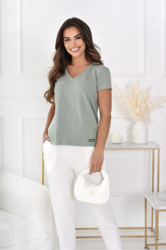 BLUZKA SEREK KRÓTKI RĘKAW - KHAKI, 38, KH OFF PINK