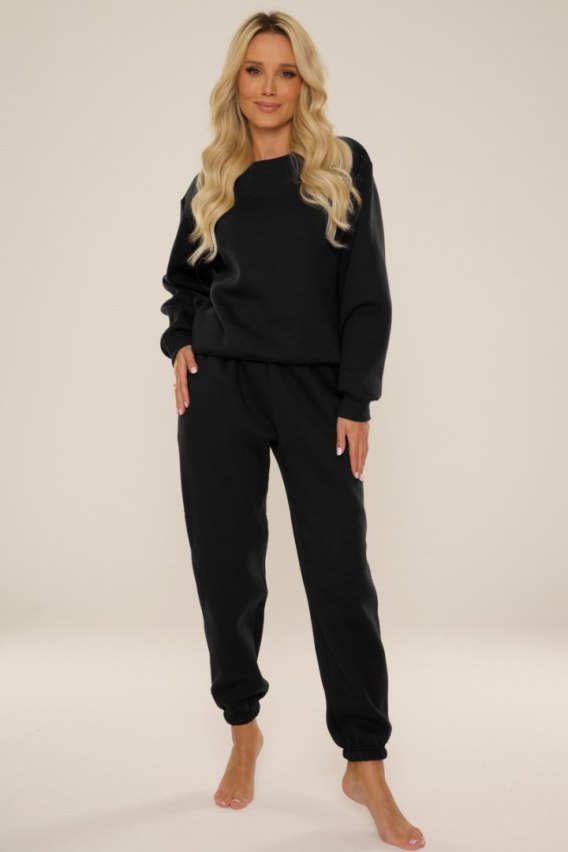 Dres damski z długim rękawem, od środka obszyty ciepłym meszkiem. Do kompletu dugie spodnie z kieszeniami, nogawki zakończone wygodnym ściągaczem.