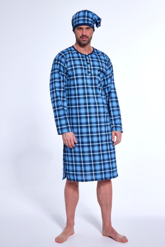 Męska koszula nocna z długim rękawem uszyta z wyjątkowo miekkiej bawełny. Przód rozpinany na guziki. Pakowana w pudelko.