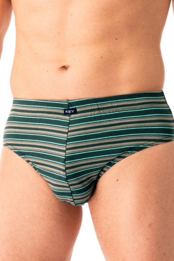 Komfortowy dwupak męskich slipów KEY w modnym, paskowanym wzorze to idealny wybór dla mężczyzn ceniących wygodę i jakość.