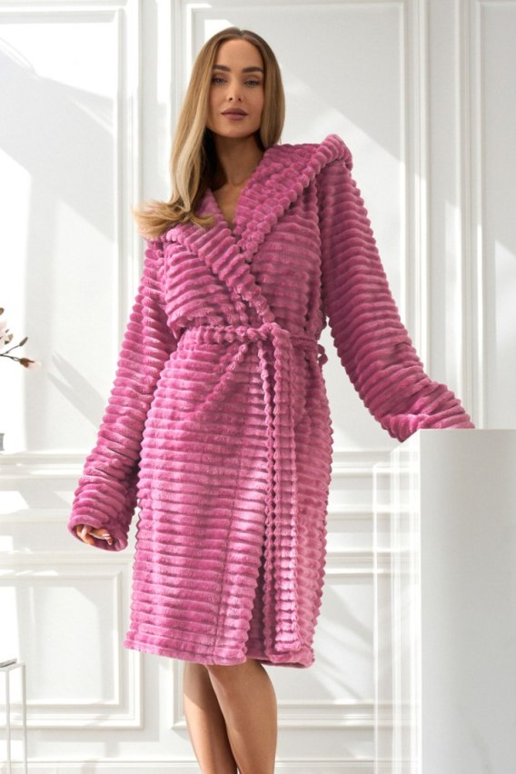 Szlafrok damski Robin 2416 L&L to idealny wybór dla kobiet, które cenią wygodę i przytulny styl. Wykonany z wyjątkowo miękkiej dzianiny typu super soft, otula ciało i zapewnia przyjemne ciepło w chłodniejsze dni. Model ma praktyczny kaptur, który dodaje mu uroku i funkcjonalności. Wiązanie w pasie umożliwia dopasowanie do sylwetki, a kieszenie na wysokości bioder zwiększają komfort użytkowania. Krótka długość sprawia, że szlafrok prezentuje się nowocześnie i lekko, pozostając jednocześnie bardzo praktycznym elementem domowej garderoby.