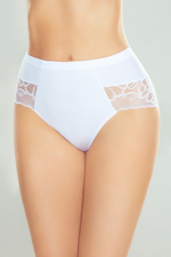 Majtki lekko korygujące dolne partie brzucha i oponkę. Tył koronkowy. Dostępne w trzech kolorach. Skład: Poliamid 80%, Elastan 17%, Bawełna 3%
